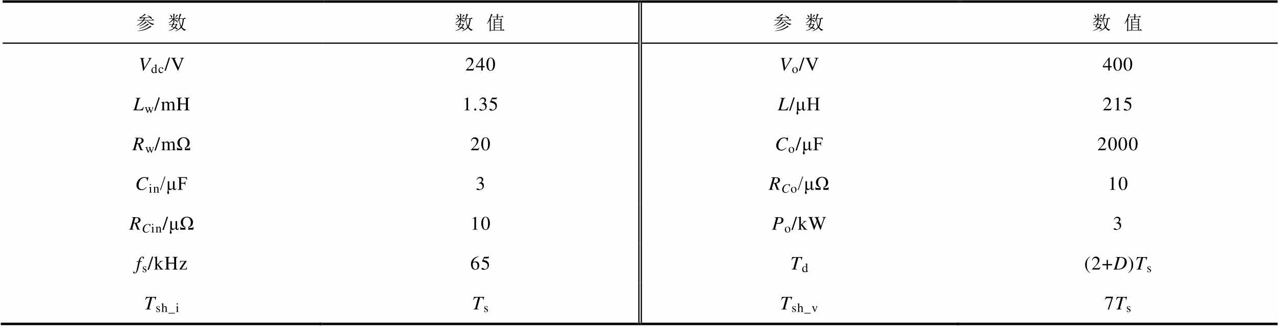 参数数值参数数值 Vdc/V240Vo/V400 Lw/mH1.35L/μH215 Rw/mΩ20Co/μF2000 Cin/μF3RCo/μΩ10 RCin/μΩ10Po/kW3 fs/kHz65Td(2+D)Ts Tsh_iTsTsh_v7Ts
