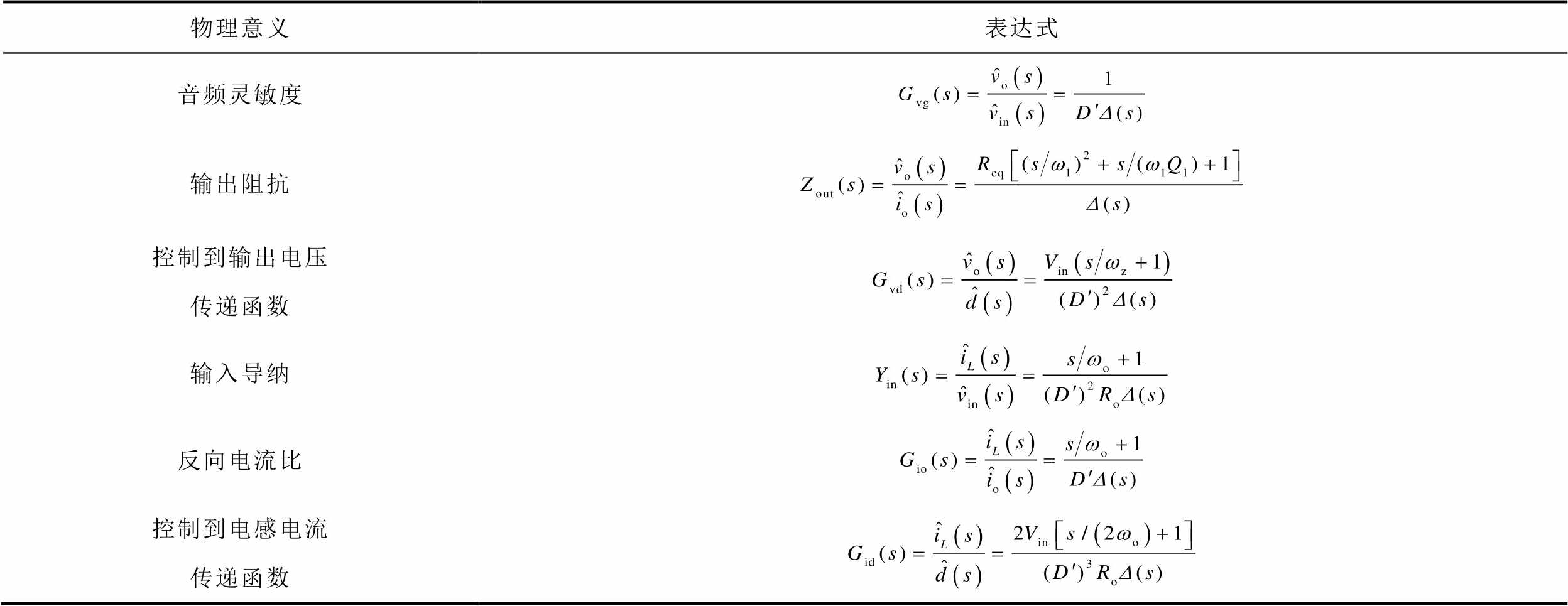 物理意义表达式 音频灵敏度 输出阻抗 控制到输出电压传递函数 输入导纳 反向电流比 控制到电感电流传递函数