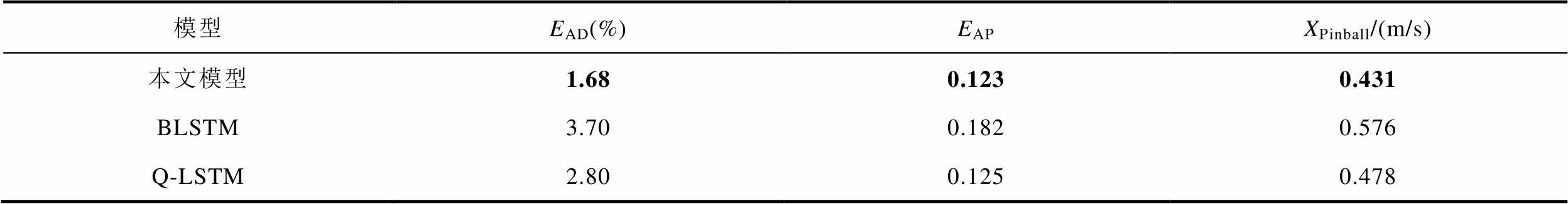 模型EAD(%)EAPXPinball/(m/s) 本文模型1.680.1230.431 BLSTM3.700.1820.576 Q-LSTM2.800.1250.478