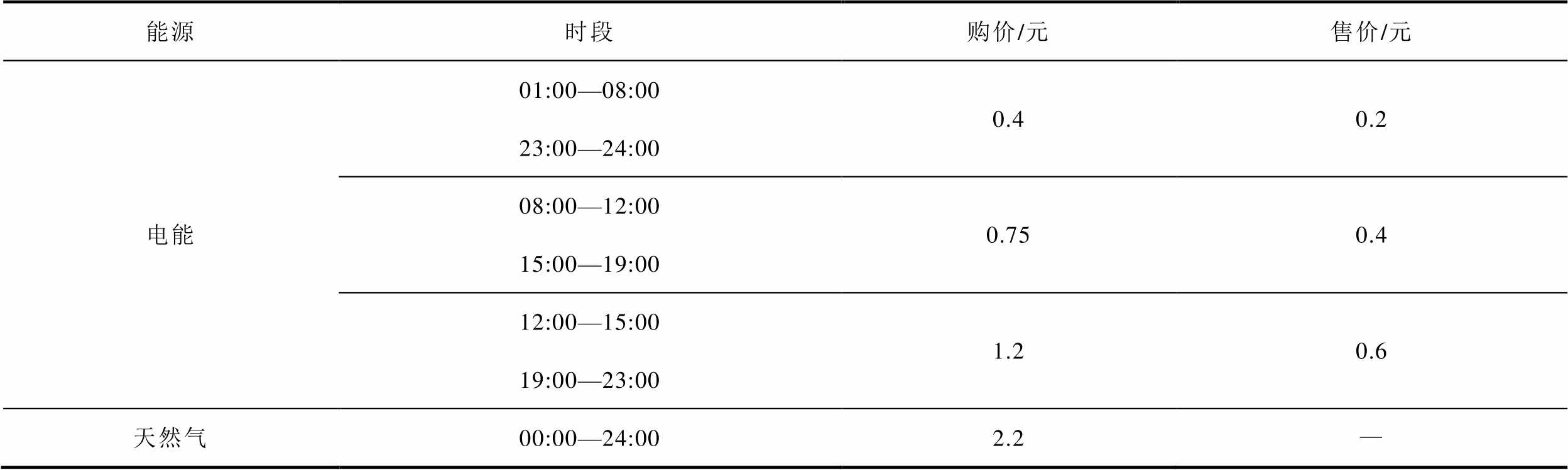 能源时段购价/元售价/元 电能01:00—08:000.40.2 23:00—24:00 08:00—12:000.750.4 15:00—19:00 12:00—15:001.20.6 19:00—23:00 天然气00:00—24:002.2—