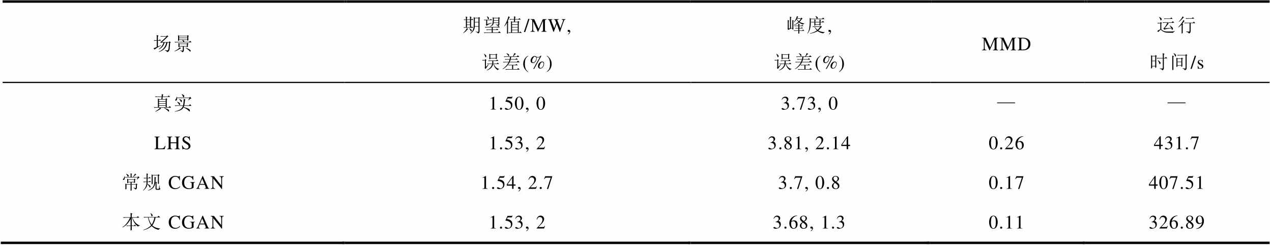 1)提出一种基于改进CGAN的场景生成方法,用于生成DRO集合的初始新能源场景。该CGAN模型使用Wasserstein距离作为判别器损失函数,以优化训练过程中梯度消失和模式崩溃的问题。同时,以新能源功率日前预测值作为改进CGAN的条件变量,使改进CGAN能够学习满足条件的噪声分布与真实数据训练集之间的映射关系,从而更准确地描述新能源出力的随机特性。