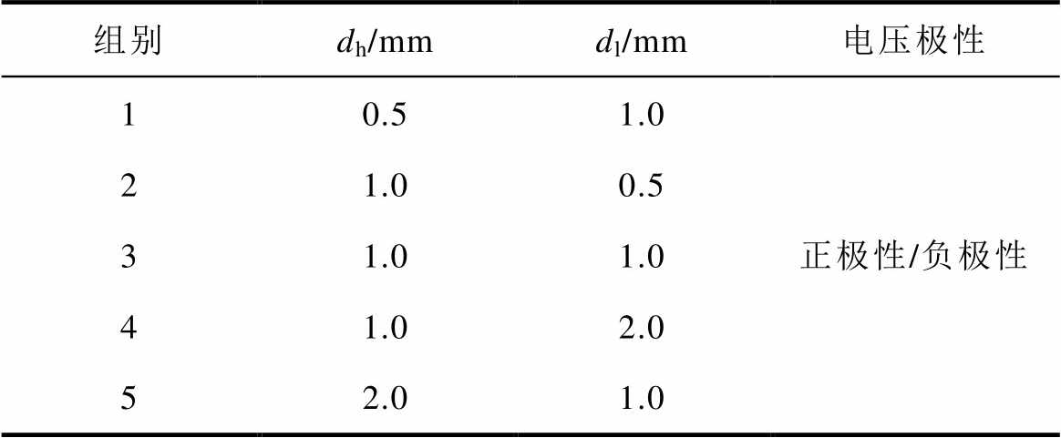 组别dh/mmdl/mm电压极性 10.51.0正极性/负极性 21.00.5 31.01.0 41.02.0 52.01.0