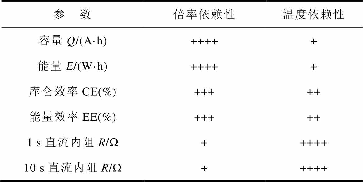 参 数倍率依赖性温度依赖性 容量Q/(A·h)+++++ 能量E/(W·h)+++++ 库仑效率CE(%)+++++ 能量效率EE(%)+++++ 1 s直流内阻R/W+++++ 10 s直流内阻R/W+++++