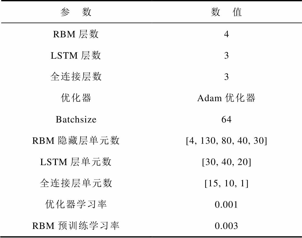 表5为IDBN-LSTM模型的详细参数。为了更好地量化本文提出的锂离子电池容量估计方法,引入相对误差(Relative Error, RE)、平均绝对百分比误差(Mean Absolute Percentage Error, MAPE)、方均根百分比误差(Root Mean Square Percentage Error, RMSPE)和决定系数R2验证其准确性与有效性,四个指标计算公式为
