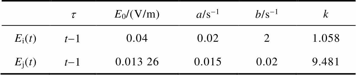 标准IEC 61000-2-9[34]给出HEMP E3电场的标准双指数函数波形如图1所示,适用于电导率为10-4 S/m的均匀大地。