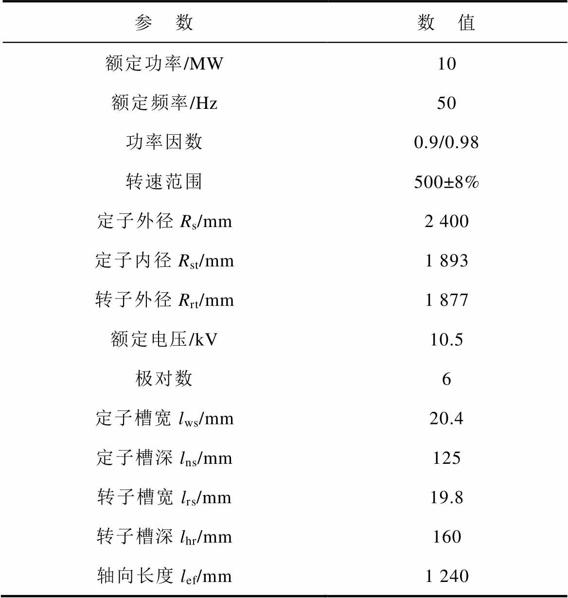 表2 交流励磁电机参数计算结果