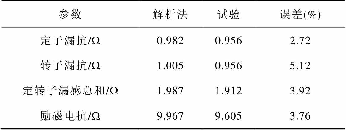 参数解析法试验误差(%) 定子漏抗/W0.9820.9562.72 转子漏抗/W1.0050.9565.12 定转子漏感总和/W1.9871.9123.92 励磁电抗/W9.9679.6053.76