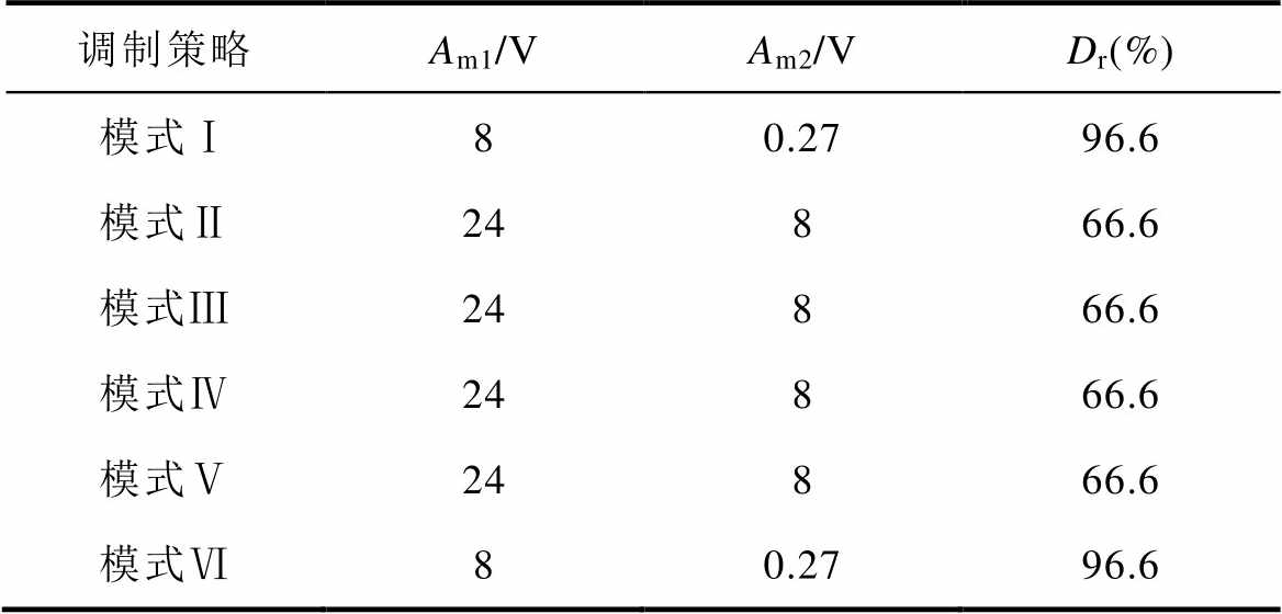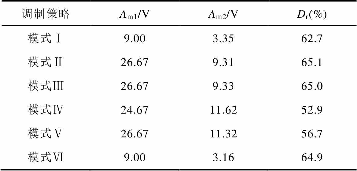 调制策略Am1/VAm2/VDr(%) 模式Ⅰ9.212.1277.0 模式Ⅱ25.679.4263.3 模式Ⅲ25.839.3363.9 模式Ⅳ24.1612.0050.3 模式Ⅴ25.8312.5051.6 模式Ⅵ8.512.5969.6