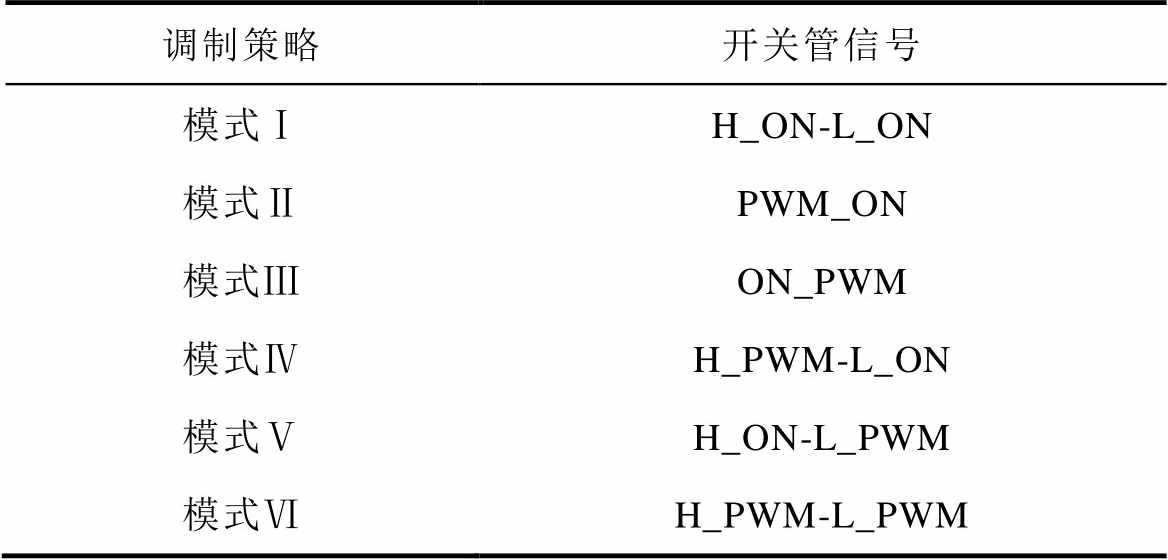 调制策略开关管信号 模式ⅠH_ON-L_ON 模式ⅡPWM_ON 模式ⅢON_PWM 模式ⅣH_PWM-L_ON 模式ⅤH_ON-L_PWM 模式ⅥH_PWM-L_PWM
