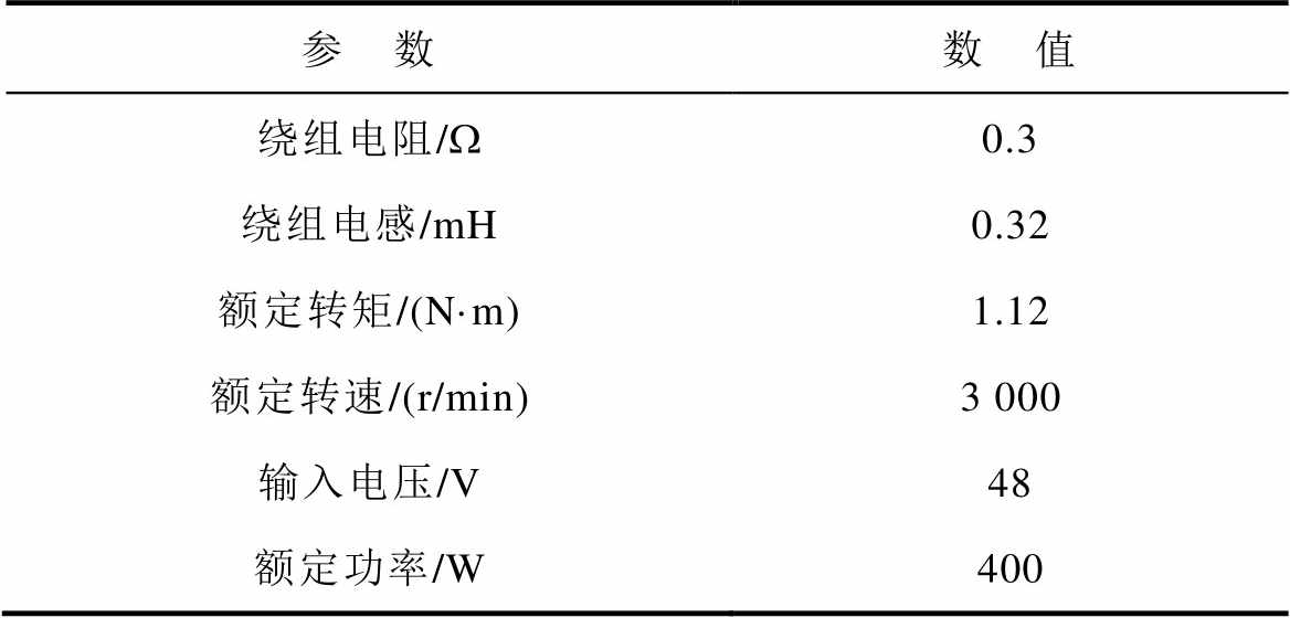 参 数数 值 绕组电阻/W0.3 绕组电感/mH0.32 额定转矩/(N·m)1.12 额定转速/(r/min)3 000 输入电压/V48 额定功率/W400