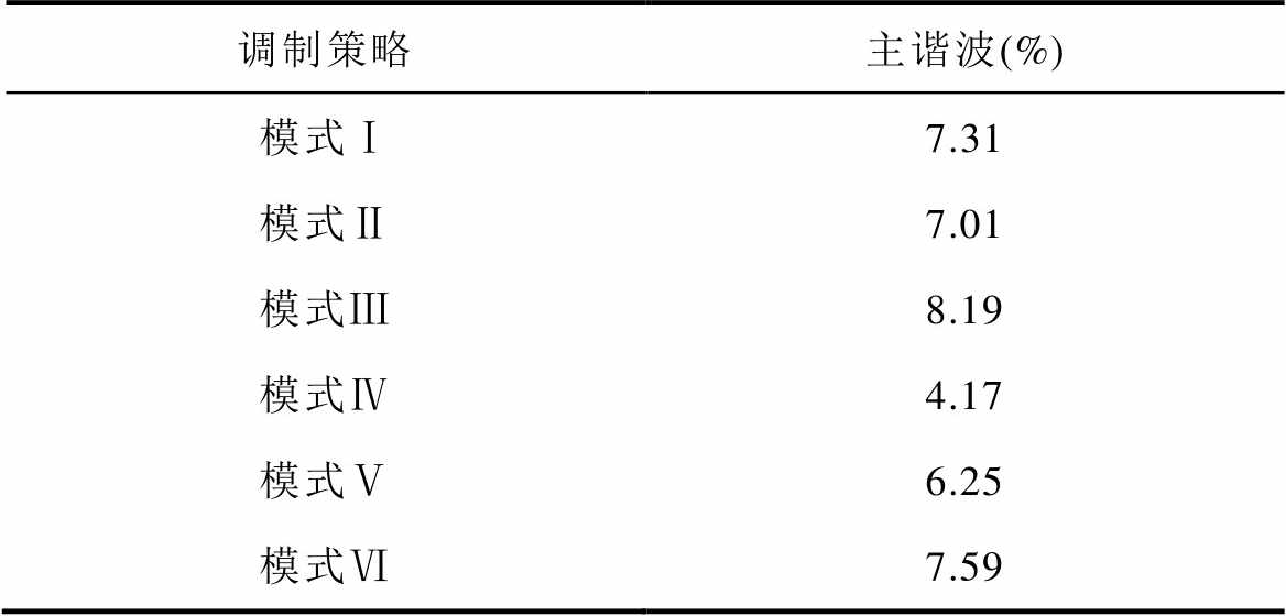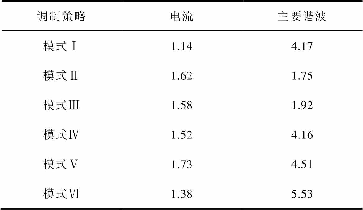 调制策略电流主要谐波 模式Ⅰ1.144.17 模式Ⅱ1.621.75 模式Ⅲ1.581.92 模式Ⅳ1.524.16 模式Ⅴ1.734.51 模式Ⅵ1.385.53