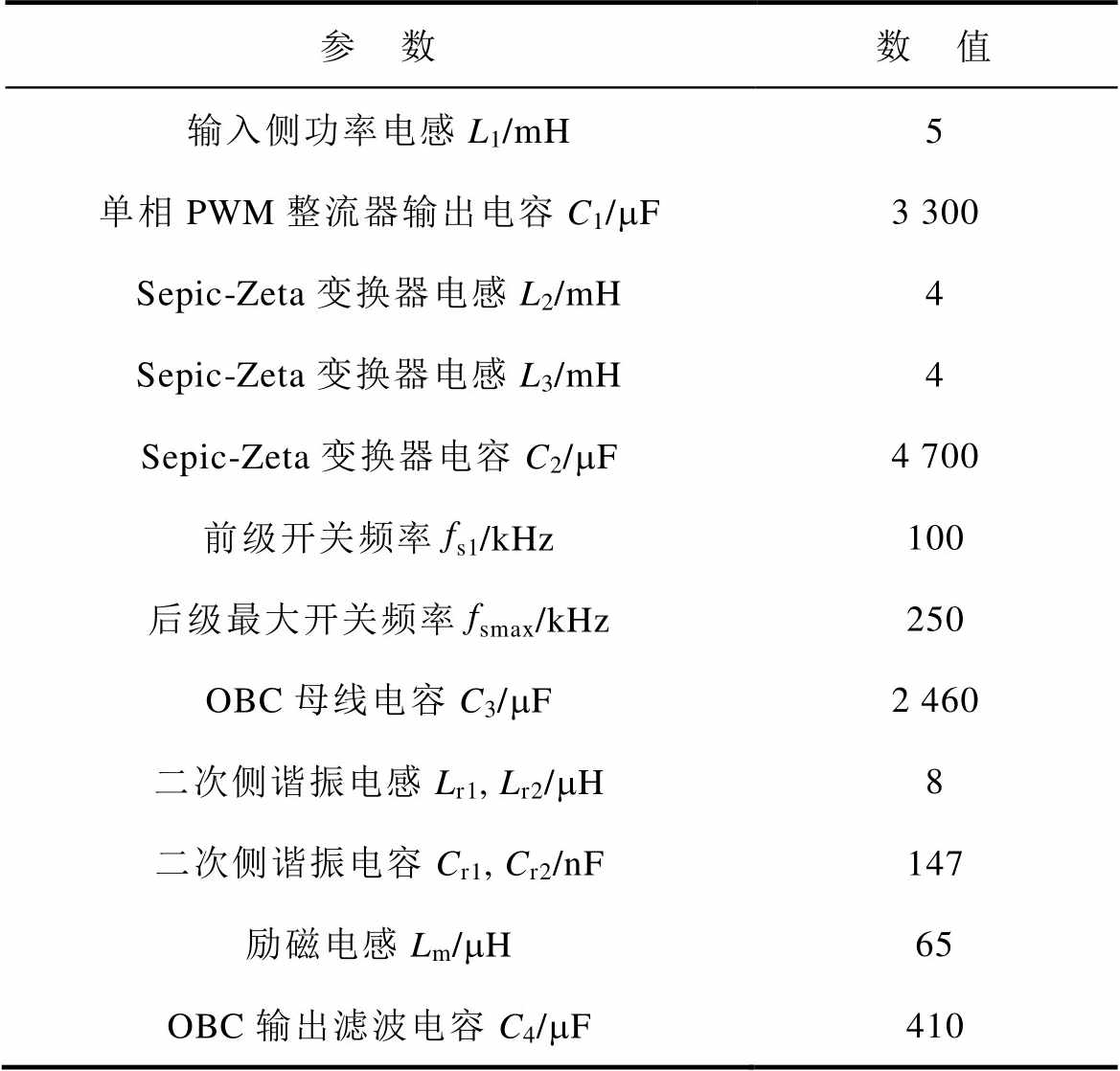 宽增益OBC拓扑结构如图1所示。前级的AC-DC变换器由单相PWM整流器和Sepic-Zeta DC-DC变换器组成,后级DC-DC变换器为双向CLLLC谐振变换器。
