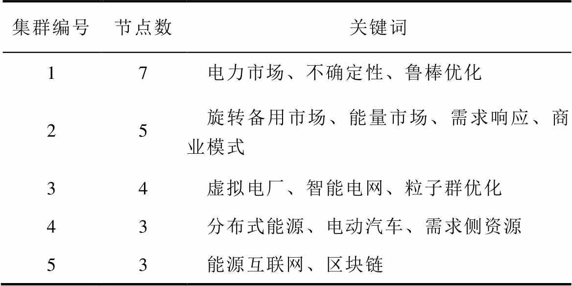 表1 2013—2017年间虚拟电厂领域共现关键词集群