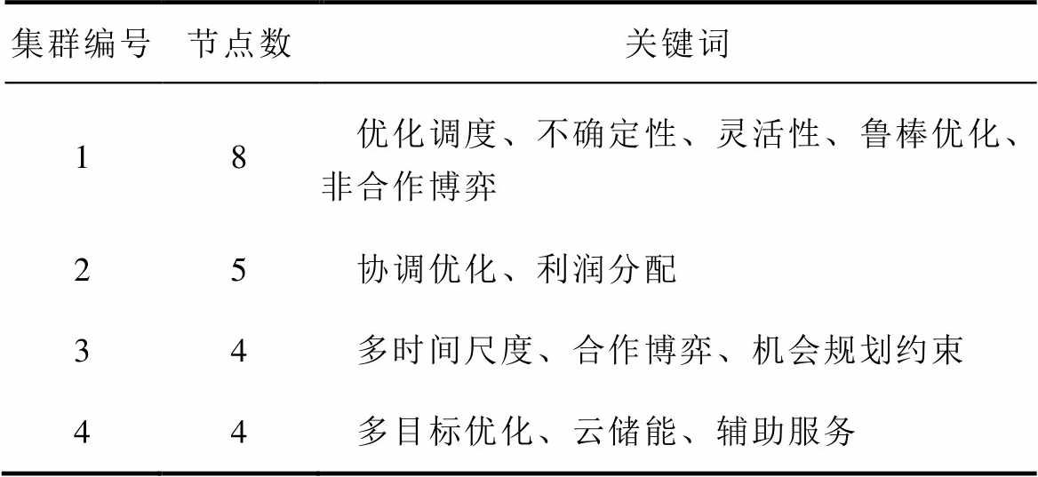 表2 2018—2021年间虚拟电厂领域共现关键词集群