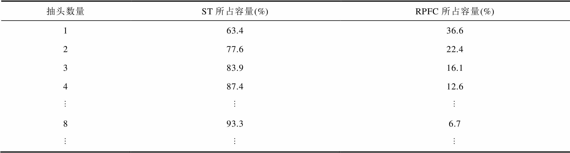 表1 不同抽头下EHPFC中ST及RPFC容量占比