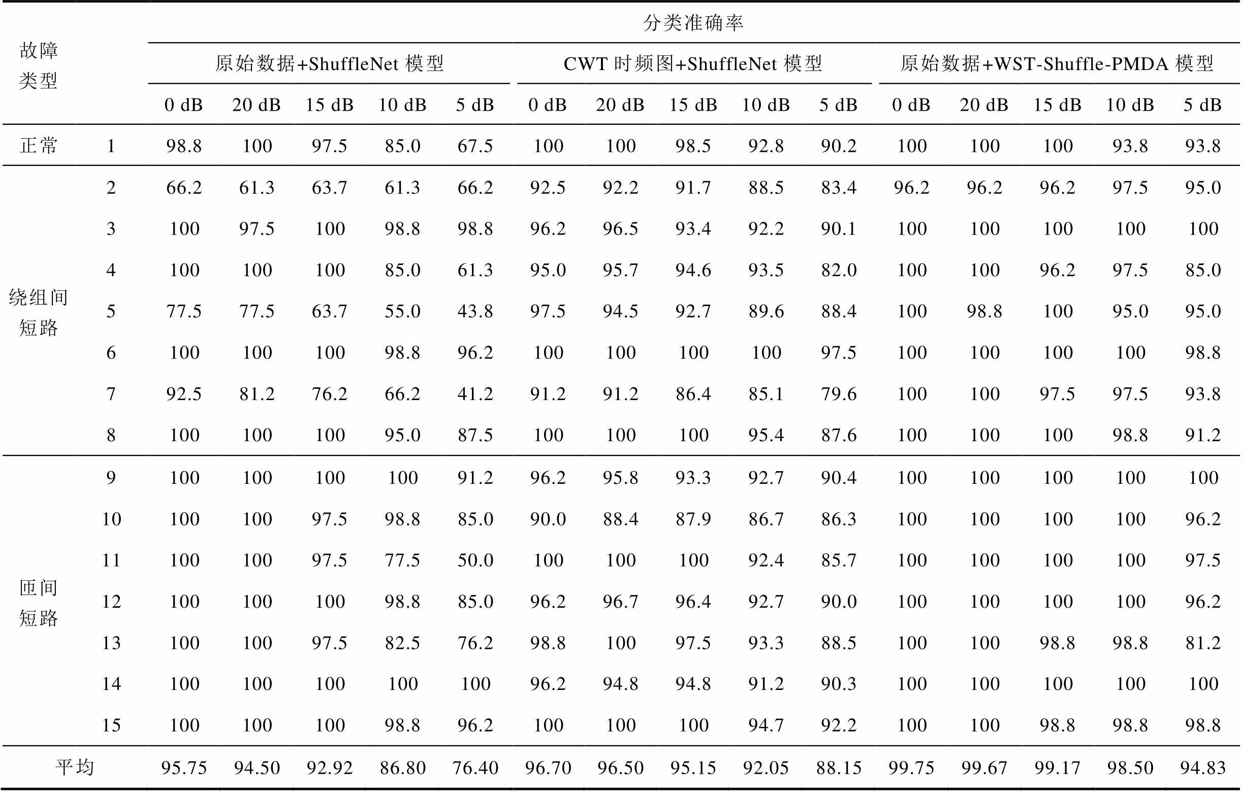 为提高各类PMSM故障类型的识别准确率,本文克服了传统方法的局限性,提出了一种基于WST与Shuffle-PMDA模型的新型PMSM故障识别方法。该识别体系充分利用WST进行特征挖掘与增强,并结合Shuffle-PMDA模型的强大特征提取能力,从而实现了较高的识别准确率。经过仿真与对比实验,得出的结论如下: