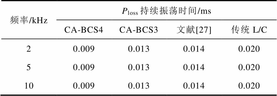 频率/kHzPloss持续振荡时间/ms CA-BCS4CA-BCS3文献[27]传统L/C 20.0090.0130.0140.020 50.0090.0130.0140.020 100.0090.0130.0140.020