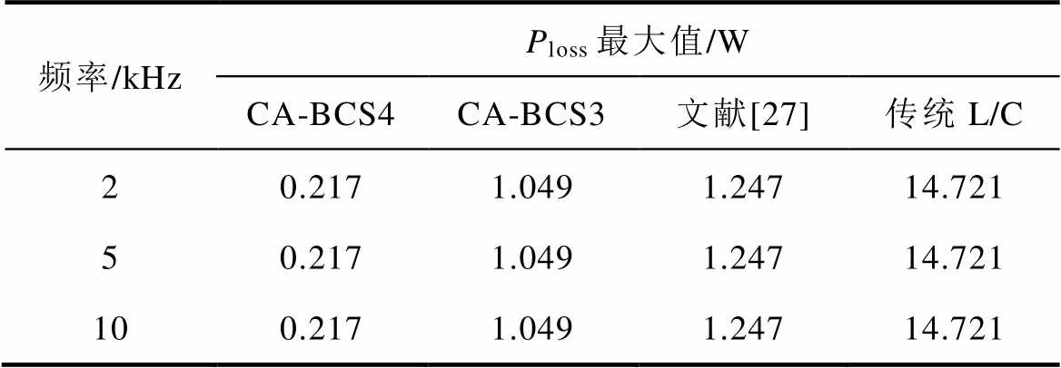频率/kHzPloss最大值/W CA-BCS4CA-BCS3文献[27]传统L/C 20.2171.0491.24714.721 50.2171.0491.24714.721 100.2171.0491.24714.721