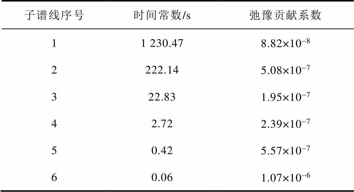 根据本文所提方法构建去极化电流二次微分时域谱线,然后对其末端按照3.2节所述方法依次进行解谱,各条子谱线解谱过程如图5所示,解谱结果如图6所示,各子谱线参数见表2。