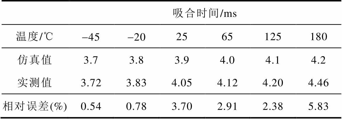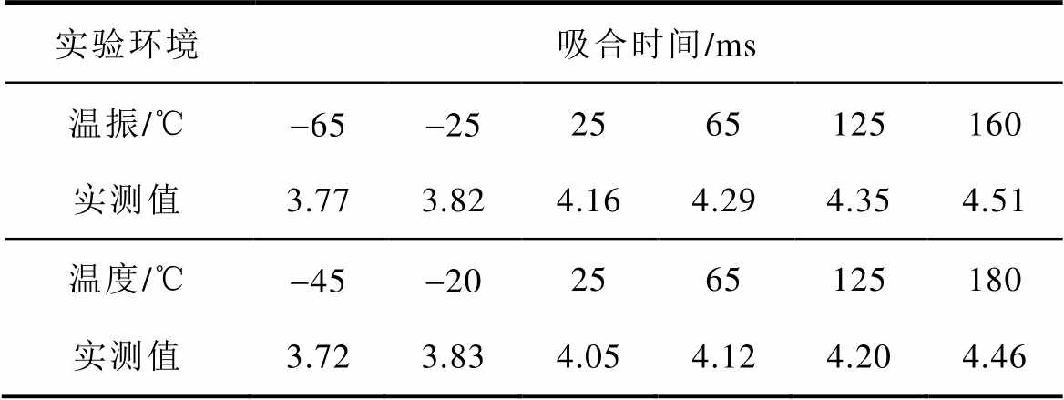 实验环境吸合时间/ms 温振/℃-65-252565125160 实测值3.773.824.164.294.354.51 温度/℃-45-202565125180 实测值3.723.834.054.124.204.46