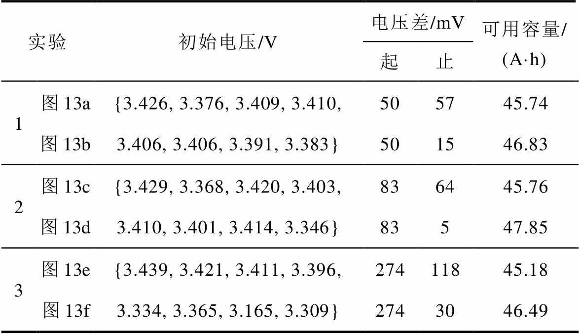 实验初始电压/V电压差/mV可用容量/(A·h) 起止 1图13a{3.426, 3.376, 3.409, 3.410, 505745.74 图13b3.406, 3.406, 3.391, 3.383}501546.83 2图13c{3.429, 3.368, 3.420, 3.403, 836445.76 图13d3.410, 3.401, 3.414, 3.346}83547.85 3图13e{3.439, 3.421, 3.411, 3.396, 27411845.18 图13f3.334, 3.365, 3.165, 3.309}2743046.49