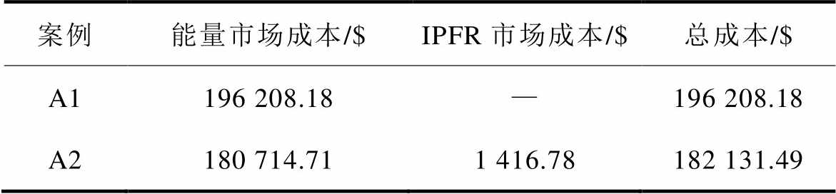 能量市场和IPFR市场的出清价格在趋势上具有一致性,其反映了各时段内市场的供需关系。具体而言,在负荷高峰时段,能量市场的需求显著增长,这导致市场出清价格攀升至峰值水平。与此同时,若此时段内系统出现负荷扰动,系统对惯量的需求以及对一次调频能力的要求也会显著提高。相应地,惯量和一次调频系数的市场价格也会同步提升。整体上看,IPFR市场出清价格走势与频率稳定风险呈正相关。因此,本文的IPFR市场机制在更大规模案例中具有很好的适应性和扩展性。