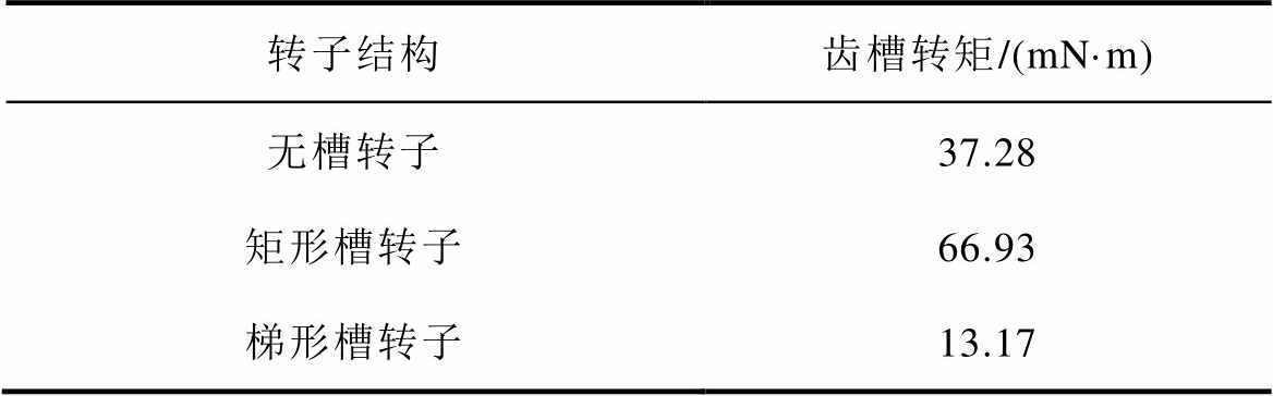 转子结构齿槽转矩/(mN·m) 无槽转子37.28 矩形槽转子66.93 梯形槽转子13.17