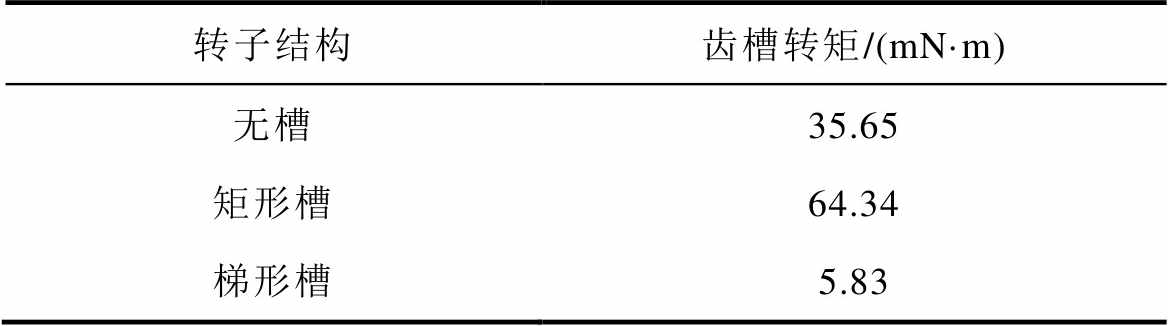 转子结构齿槽转矩/(mN·m) 无槽35.65 矩形槽64.34 梯形槽5.83