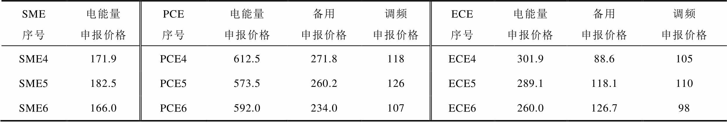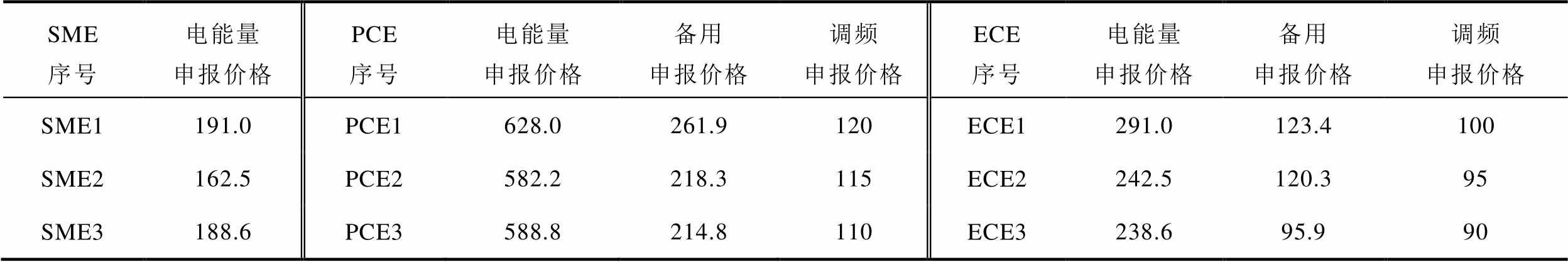 分别为PCE、ECE和SME参与电能量市场的报价函数;
