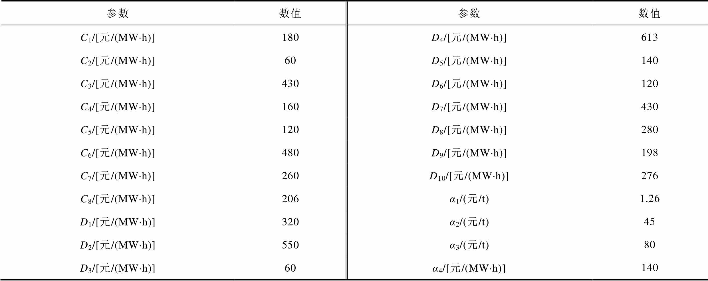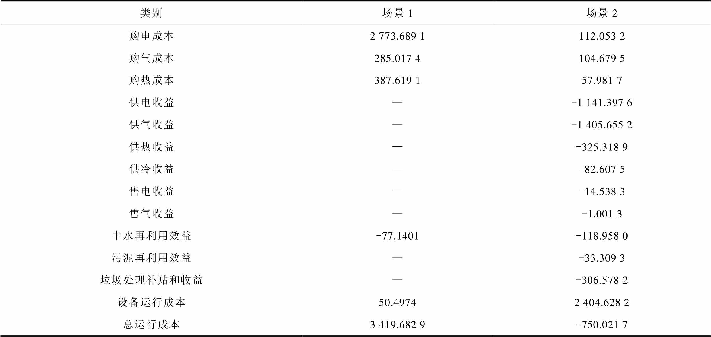 为了方便分析,首先设定一个常规城市能源供给方案,作为CRMEM的多能源供给效益对比场景。其中,常规城市能源供给方案:电能完全由外电网购得,天然气由天然气网购得,热负荷采用燃气锅炉进行集中供热,冷负荷由常规冷水机组和空调机组提供。另外,假定集中供热系统中,从热源至用户端,整个供热网络的热能损失为8%,集中供热系统的能效比为0.92,供电、供气系统的部分数据及系统能效可以参考文献[28]。