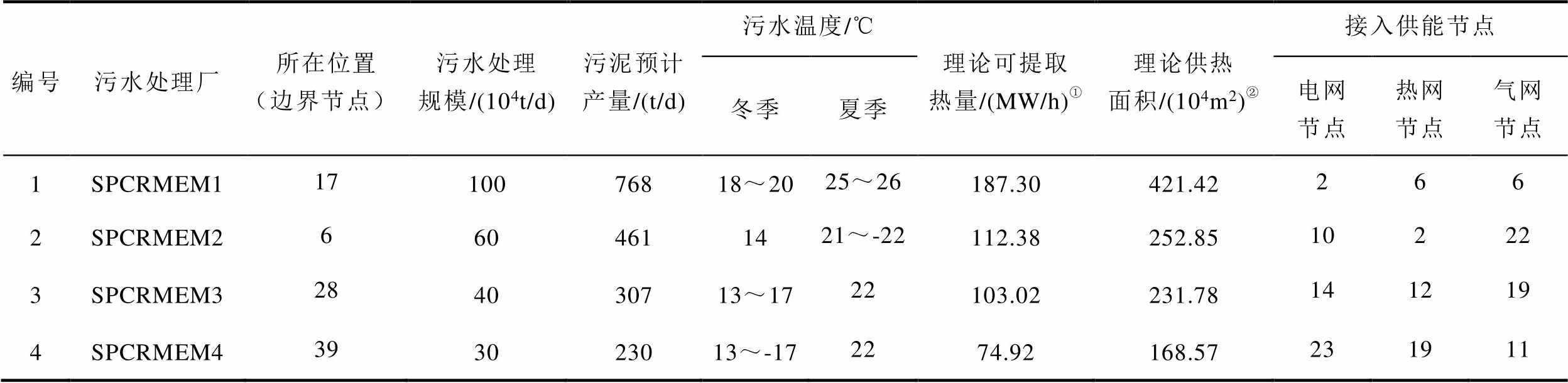 城市原生污水首先经过格栅过滤、沉淀等环节的处理后,得到平均温度在12~16℃以上的中水[19-20],再将其输送至热泵提取其中的热量,并使排放水温低于5℃。然后,热泵将提取的热量通过管网输送至居民生活区,满足城市居民用冷、用热需求,也可存储于蓄热/蓄冷设备,或输送至发酵池,用于污泥发酵制沼气。另外,污水处理过程中过滤、沉淀所得到的污泥输送至发酵池,并保持发酵池温度在20~45℃,以进行厌氧发酵制沼气[25],产生的沼气经脱硫后可直接满足用气需求,也可储存于储气设备,或供给沼气发电机发电,产生的电能输送给污水处理厂用于污水处理或直接满足居民用电需求;沼气发电机发电过程产生的热量可通过余热回收装置回收利用,用于保持发酵池发酵温度恒定[26]。最后,供热/供冷结束后的中水,经管道输送用作城市绿化用水、生活杂用水或者工业冷却用水等;污泥经发酵后,可经过浓缩、脱水等过程,外运作为建筑材料等原材料;由于发酵后的污泥富含的大量微生物,有利于促进植物生长,污泥也可以进行土地堆肥,加速城市周围土壤环境生态发展。城市居民产生的SPCRMEM处理、供能,充分利用污水中的可再用余能,实现城市污水、污泥无害、资源化利用和污水减量排放,提高污水处理能力,保护地下水。
