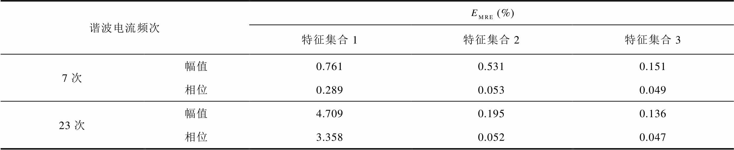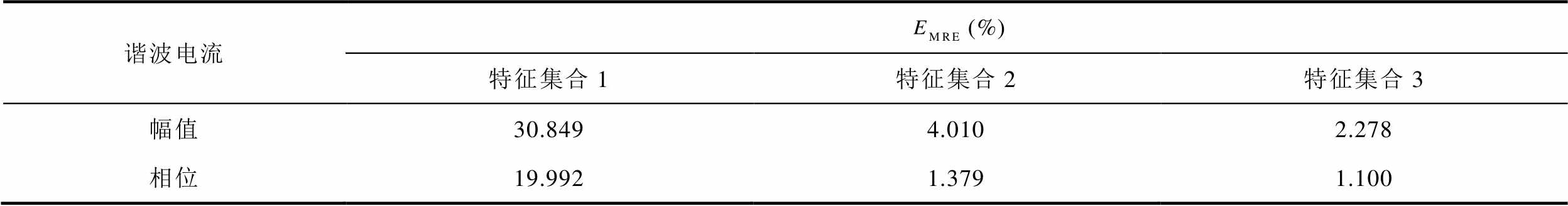 在实测数据算例中,所监测的500 kV变电站周边谐波源设备数量较多,种类丰富,存在牵引站和电解铝等三相不平衡冲击性负荷,此时特征集合1难以准确刻画该谐波源设备群的谐波发射特性,对幅值和相位的拟合误差都比较大;特征集合2考虑到同相各频次谐波电压对谐波电流的影响,拟合误差有所降低;考虑了三相不平衡分量影响的特征集合3对谐波电流幅值和相位的拟合误差小于特征集合1和特征集合2,在实际电力系统谐波源设备群的等值建模中表现最好。