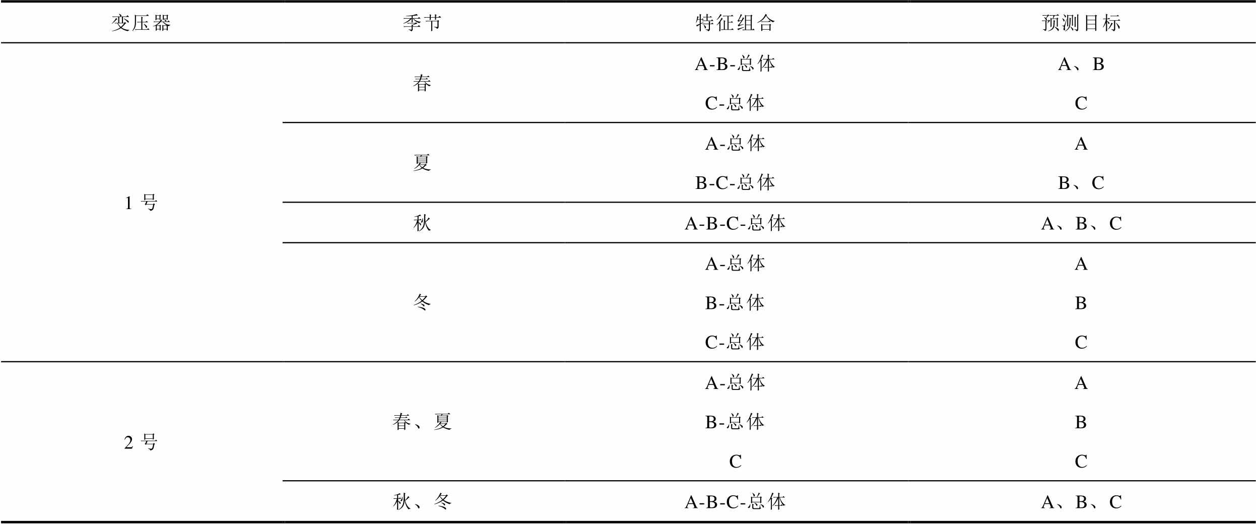 综上所述,充分捕捉配变三相及总体负荷的季节性差异化相关性及负荷序列的多周期性特征,是提升预测精度的重要前提。同时,三相负荷与总体负荷间的叠加效应模糊了三相负荷的差异化波动特征,导致无法基于总体负荷预测准确地推断三相负荷。