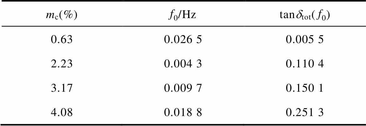 图3 不同水分含量样品的损耗谱(20℃)
