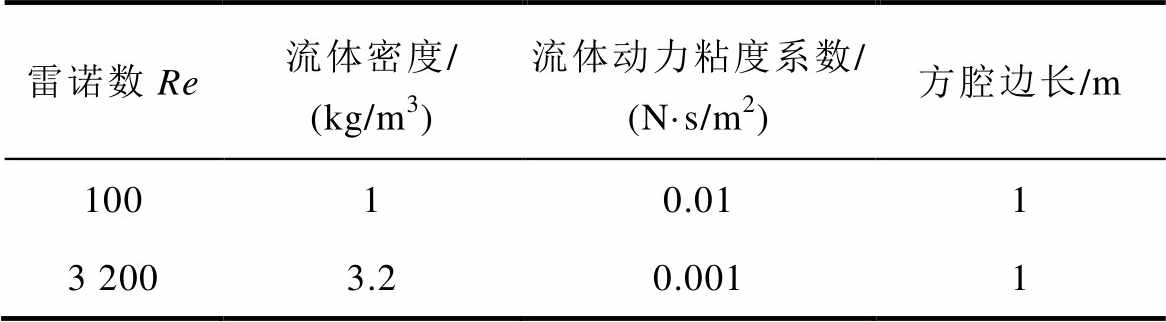 式中,r为流体密度(kg/m3);Uin为入口流速(m/s),D为特征长度(m);m为流体动力粘度系数(N·s/m2)。