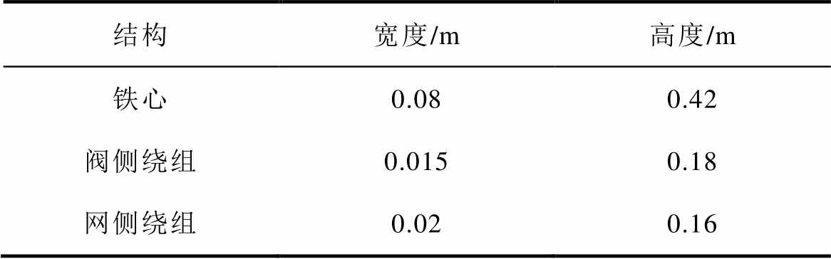 结构宽度/m高度/m 铁心0.080.42 阀侧绕组0.0150.18 网侧绕组0.020.16
