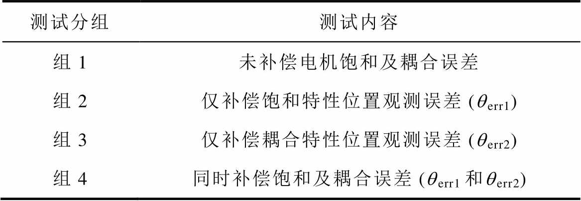 测试分组测试内容 组1未补偿电机饱和及耦合误差 组2仅补偿饱和特性位置观测误差 (qerr1) 组3仅补偿耦合特性位置观测误差 (qerr2) 组4同时补偿饱和及耦合误差 (qerr1和qerr2)