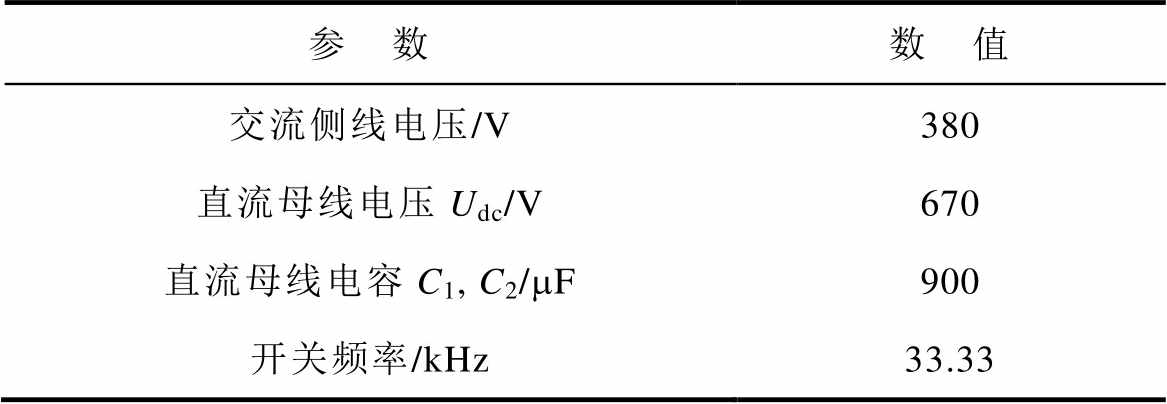 参 数数 值 交流侧线电压/V380 直流母线电压Udc/V670 直流母线电容C1, C2/mF900 开关频率/kHz33.33