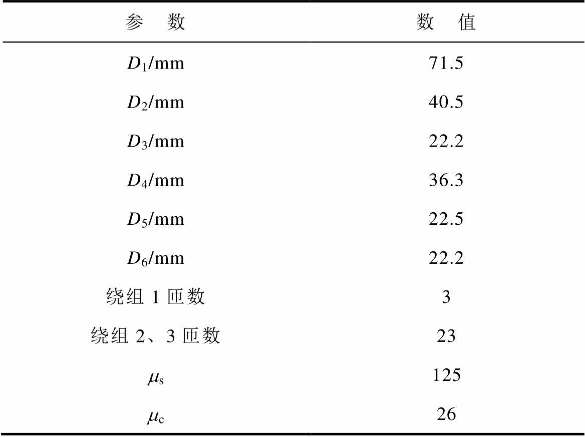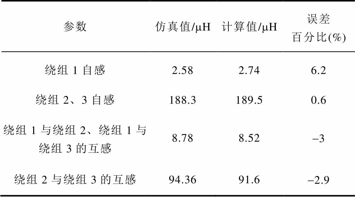 参数仿真值/mH计算值/mH误差百分比(%) 绕组1自感2.582.746.2 绕组2、3自感188.3189.50.6 绕组1与绕组2、绕组1与绕组3的互感8.788.52-3 绕组2与绕组3的互感94.3691.6-2.9