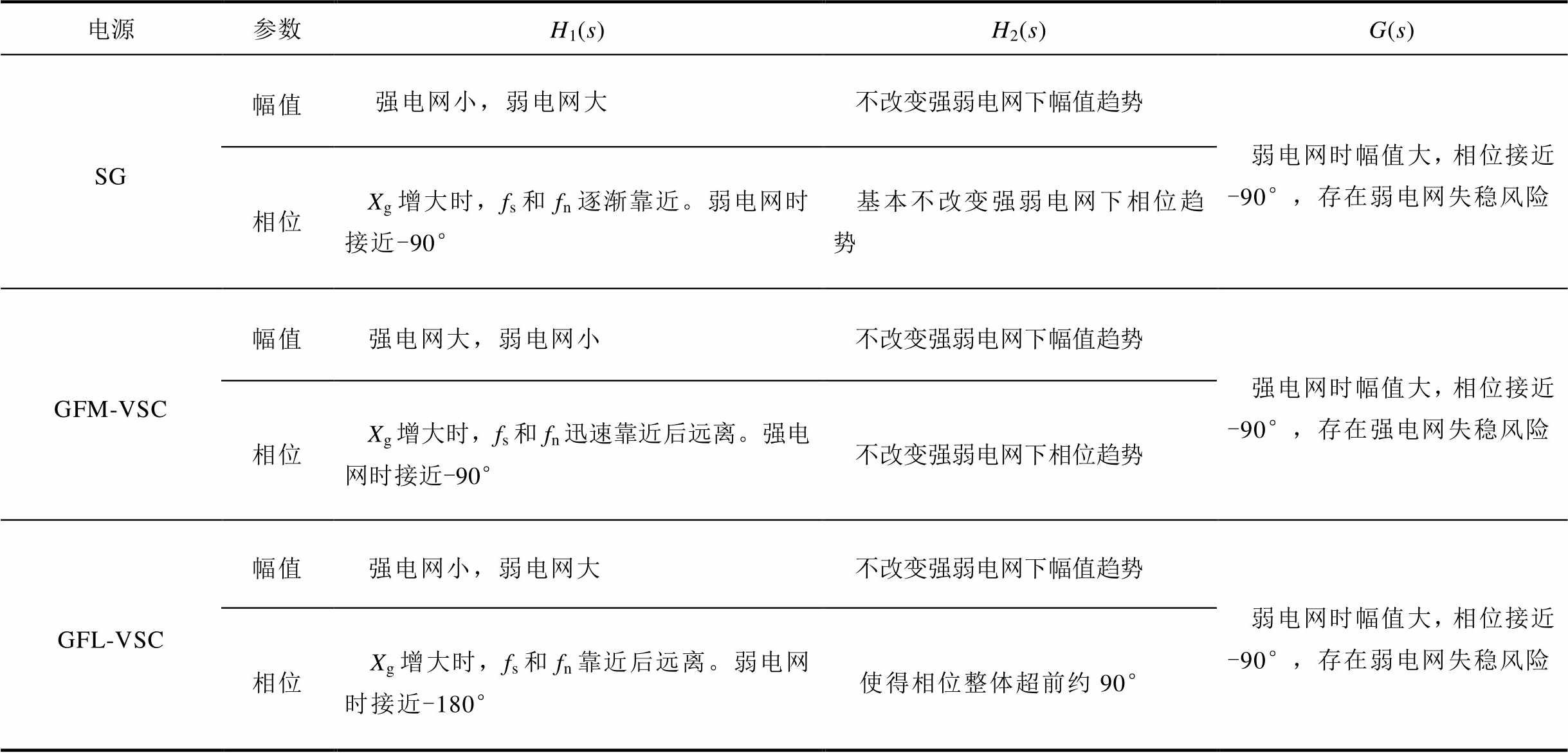 表1 SG和非SG电源并网系统强弱电网失稳现象比较总结