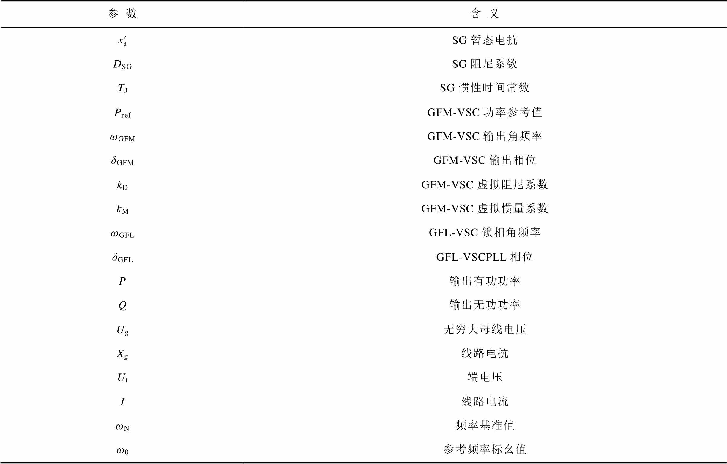 3. SG、GFM-VSC和GFL-VSC单机无穷大系统模型参数