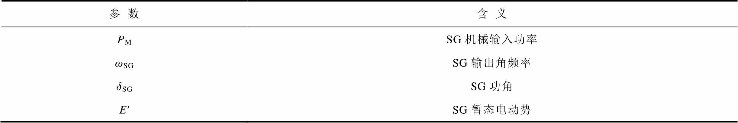 式中,δSG和ωSG分别为功角和输出角频率;DSG和TJ分别为阻尼系数和惯性时间常数;PM为机械输入功率;P为输出功率,具体表达式见附录第2节。