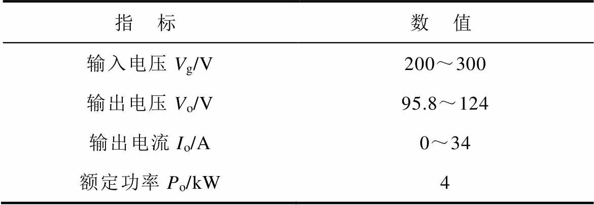 指 标数 值 输入电压Vg/V200~300 输出电压Vo/V95.8~124 输出电流Io/A0~34 额定功率Po/kW4