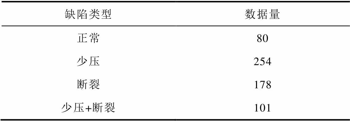 缺陷类型数据量 正常80 少压254 断裂178 少压+断裂101