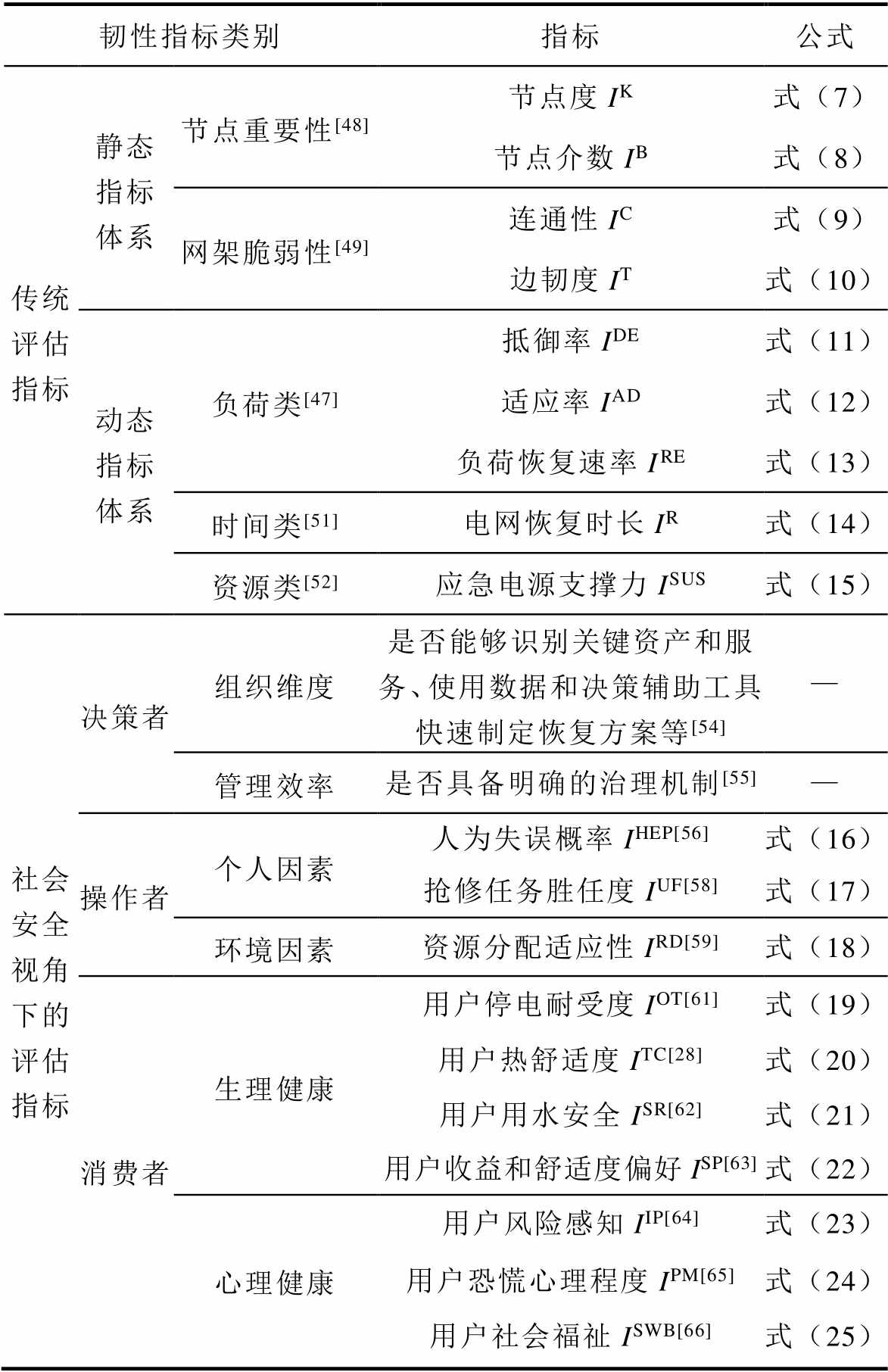 传统UPN韧性评估指标包括基于系统网络结构的静态指标和基于系统运行功能的动态指标,两种指标体系是互补的,前者可以解释系统为什么具有韧性,而后者可以明确系统具体韧性数值[47]。