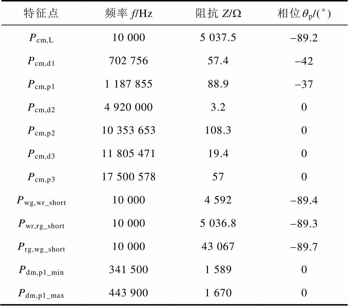 式中,Zcm,dk为共模阻抗曲线在谐振点Pcm,dk的阻抗;qcm,dk为该点的相位。