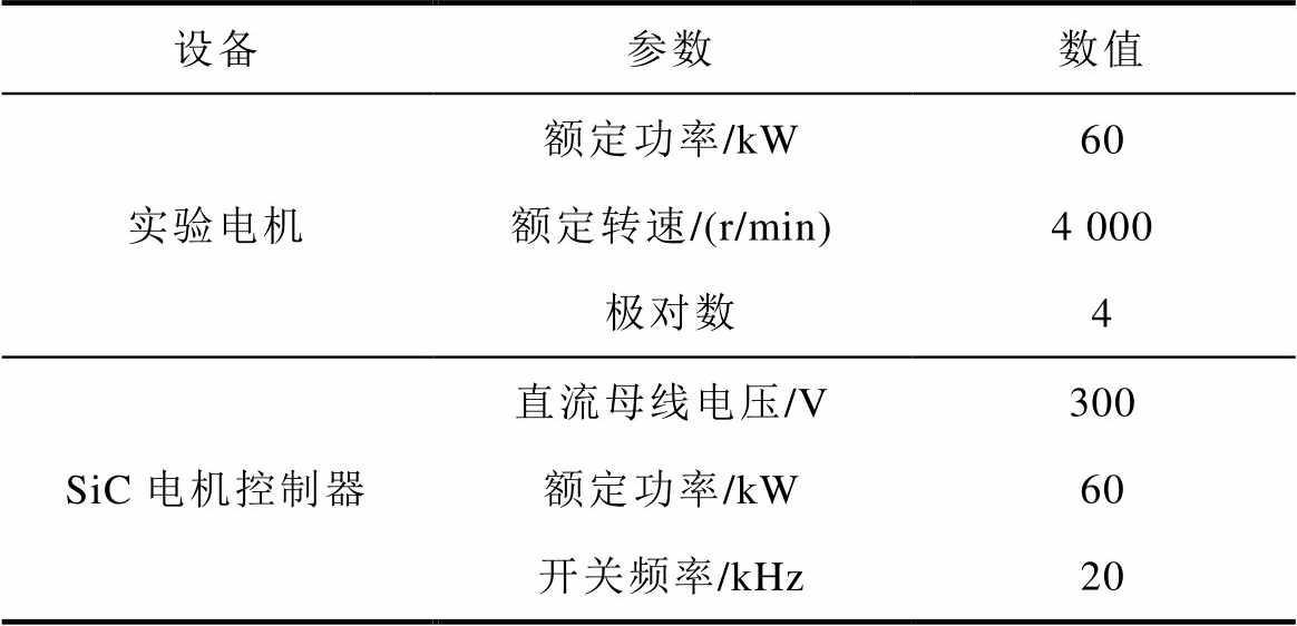 设备参数数值 实验电机额定功率/kW60 额定转速/(r/min)4 000 极对数4 SiC电机控制器直流母线电压/V300 额定功率/kW60 开关频率/kHz20