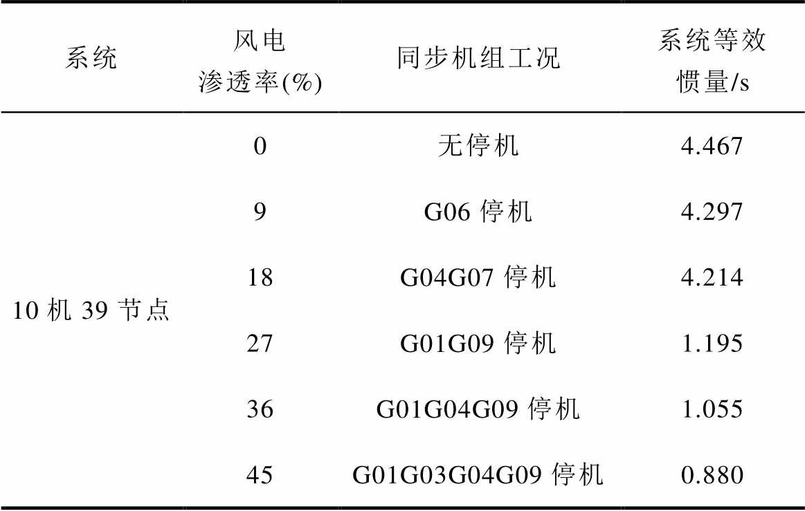 电力系统同步机组惯性常数为3~9 s之间,随着新能源机组规模化发展和常规机组的逐渐退役,系统等效惯量将持续下降。根据式(2),当新能源机组并网容量达到16.7%~72.2%以上时,系统等效惯量将下降到2.5 s以下,此时系统满足本文定义的低惯量电力系统标准。