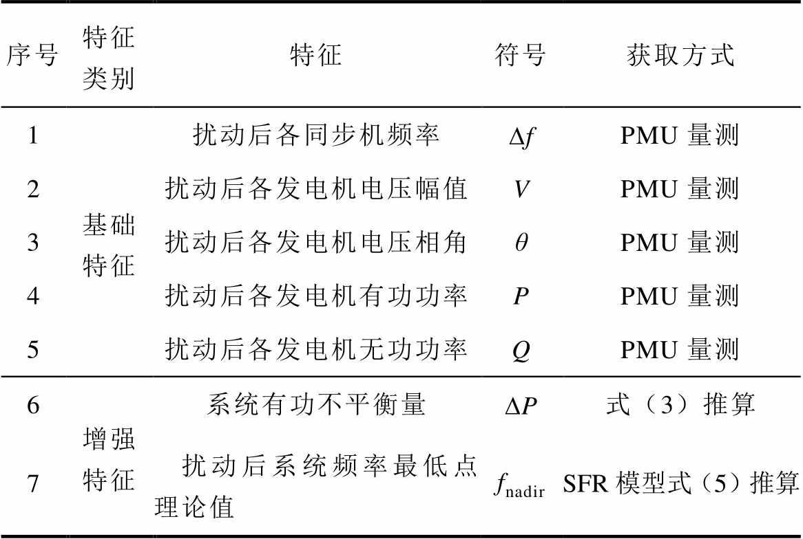 目前电力系统的低频减载方案主要分为传统低频减载、半适应低频减载和自适应低频减载。传统逐轮次和半适应低频减载都属于固定切负荷,对于系统中多样的运行情况和扰动故障缺乏足够的适应性,往往会造成过切或欠切的结果[2]。而自适应低频减载能够根据实时监测得到的系统信息自适应的做出减载决策。自适应低频减载分为基于事件、基于响应和基于频率预测的低频减载。基于事件的低频减载需要在线获得跳闸发电机机组容量,并根据离线确定的策略表来执行对应的减载动作,这种方案的有效性取决于离线决策表与系统工况的贴合性。基于响应的低频减载通过转子运动方程计算不平衡功率,能够较准确且实时地计算系统功率缺额。然而这两种低频减载策略属于被动减载,当系统中的频率下降到指定阈值时,对应的减载方案动作,策略执行没有“预见性”,不能及时阻止系统频率的快速下降,会造成低惯量电力系统过切,难以满足前述低惯量电力系统的频率安全需求。若能在系统发生故障后的短暂时间内即可判断系统的频率安全水平并作出相应的频率紧急控制措施,即主动减载技术[3-5],将降低减载量,提升低惯量电力系统所面临的频率安全水平。