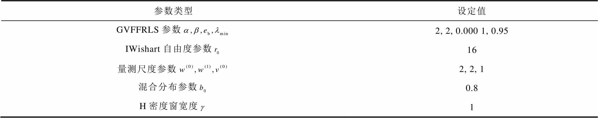 分别为广义高斯核形态参数和核带宽。根据核函数的取值范围,可以得到遗忘因子的取值集合为